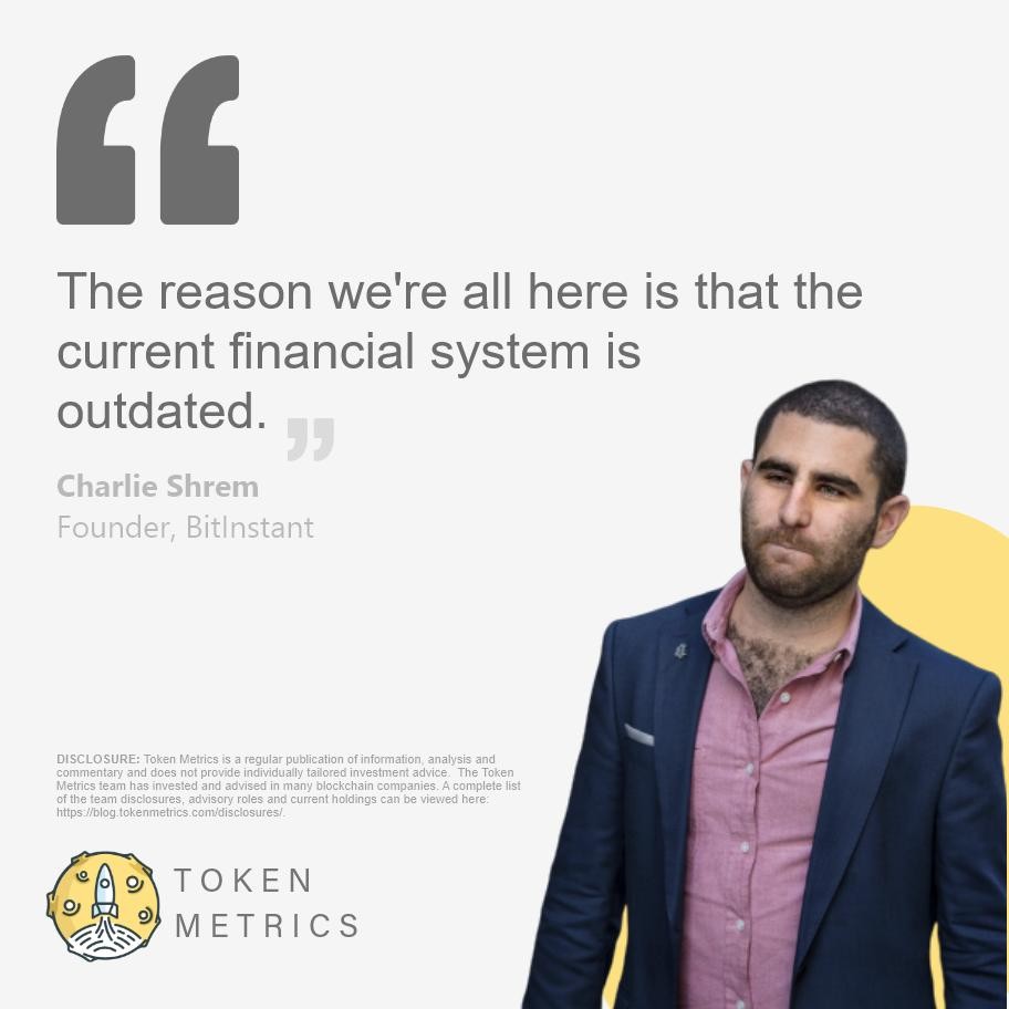 "The reason we're all here is that the current financial system is outdated." - @CharlieShrem@twitter.com - Founder, BitInstant #Crypto #Cryptocurrency #Blockchain